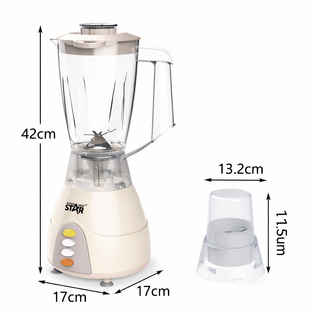 A Winning Star 2 az 1-ben Turmixgép és Őrlő (ZZJ-477-WST ST-5372) praktikus és sokoldalú konyhai eszköz, amely egy készülékben ötvözi a turmixgép és a daráló funkcióit. Ideális smoothie-k, turmixok, szószok és krémlevesek készítéséhez, valamint kávé, magvak és fűszerek gyors aprításához.