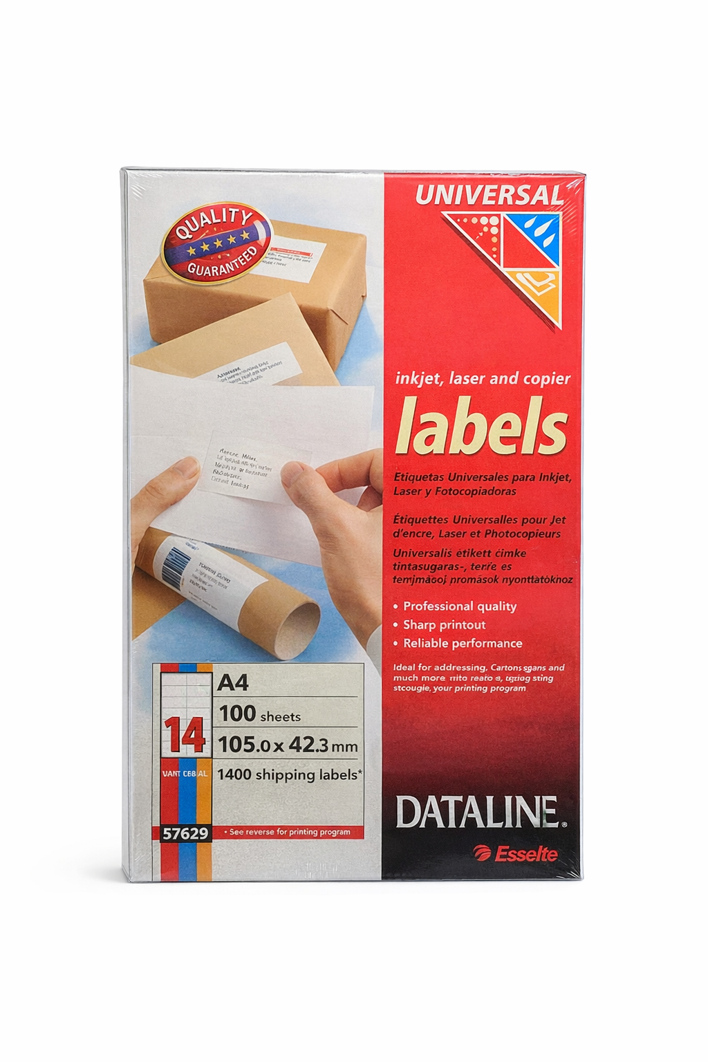 A DataLine Esselte fehér etikett címke megbízható és professzionális megoldás mindennapi irodai, postázási és logisztikai feladatokhoz. Az A4-es címkelapokon 14 darab, 105 × 42,3 mm méretű etikett található, amelyek ideálisak borítékok, csomagok, dobozok és irattartók pontos és esztétikus jelölésére.