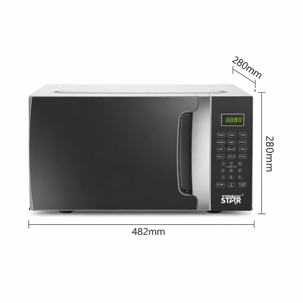 Winning Star ST-90501, digitális mikrohullámú sütő 20L, 20 literes mikró, fekete mikrohullámú sütő, LED kijelzős mikró, automata programos mikrohullámú sütő, modern mikró webshop.
