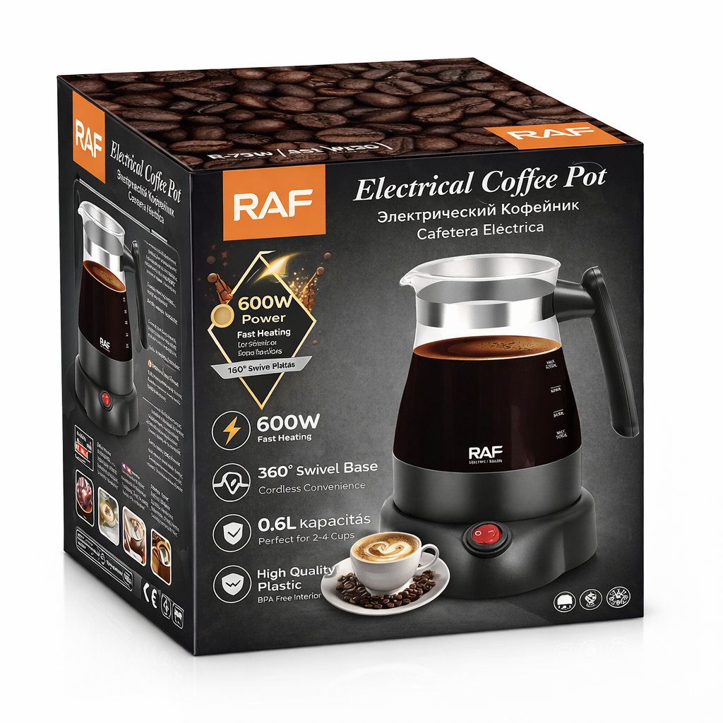 A RAF R.7210 elektromos kávéfőző praktikus és modern megoldást kínál a mindennapi kávékészítéshez. Kompakt kialakításának és 0,6 literes kapacitásának köszönhetően ideális választás otthoni, irodai vagy akár nyaralói használatra. A 600W teljesítmény gyors felfűtést biztosít, így rövid idő alatt élvezheti kedvenc kávéját.
