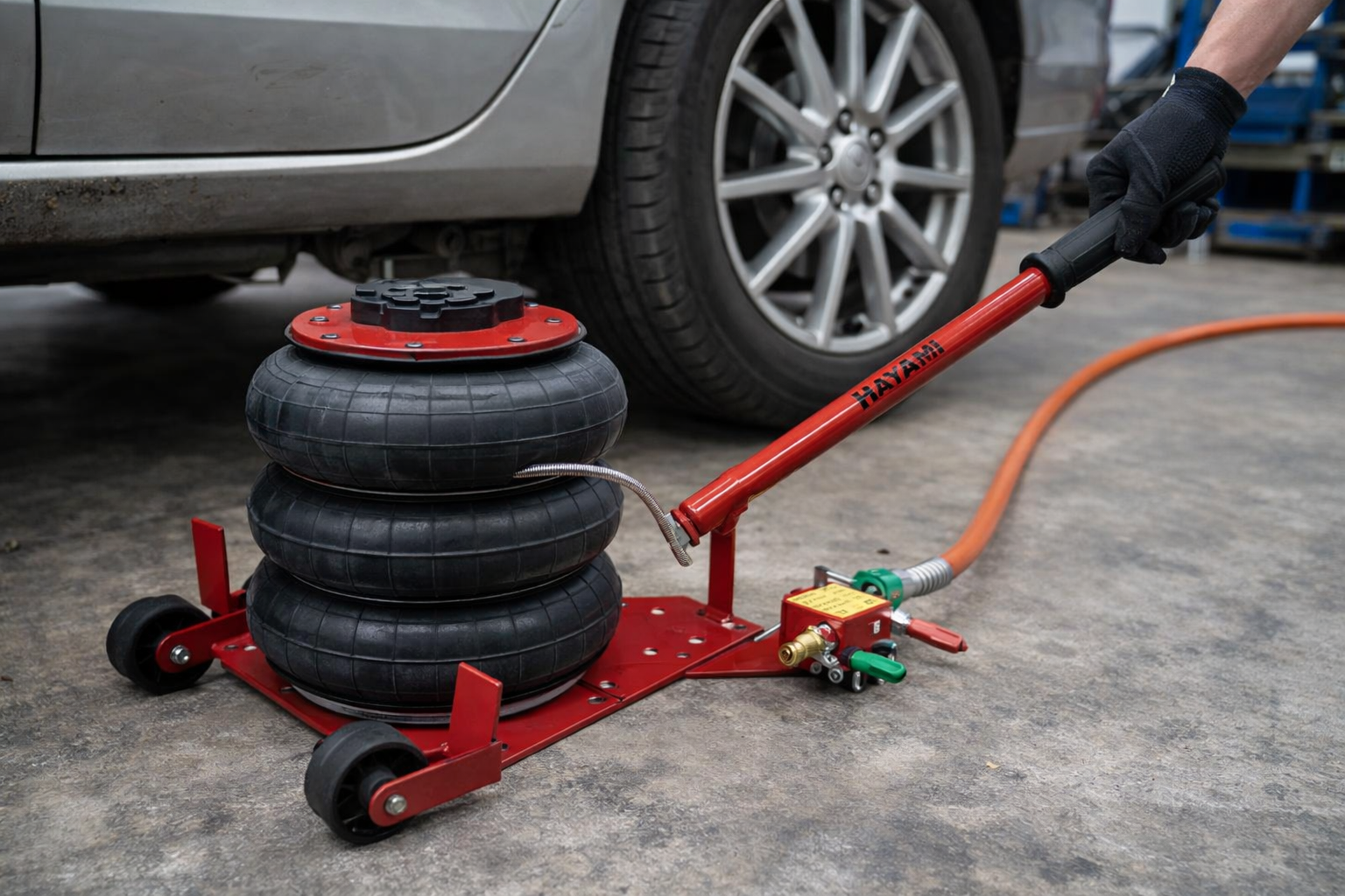 A Hayami KL2025-1 pneumatikus légpárnás emelő ideális megoldás autószervizek, gumis műhelyek és haladó otthoni felhasználók számára. A 4,5 tonnás teherbírás, a stabil háromlábú kialakítás és a ballonos (légpárnás) rendszer lehetővé teszi a járművek gyors, egyenletes és biztonságos emelését minimális erőkifejtéssel.