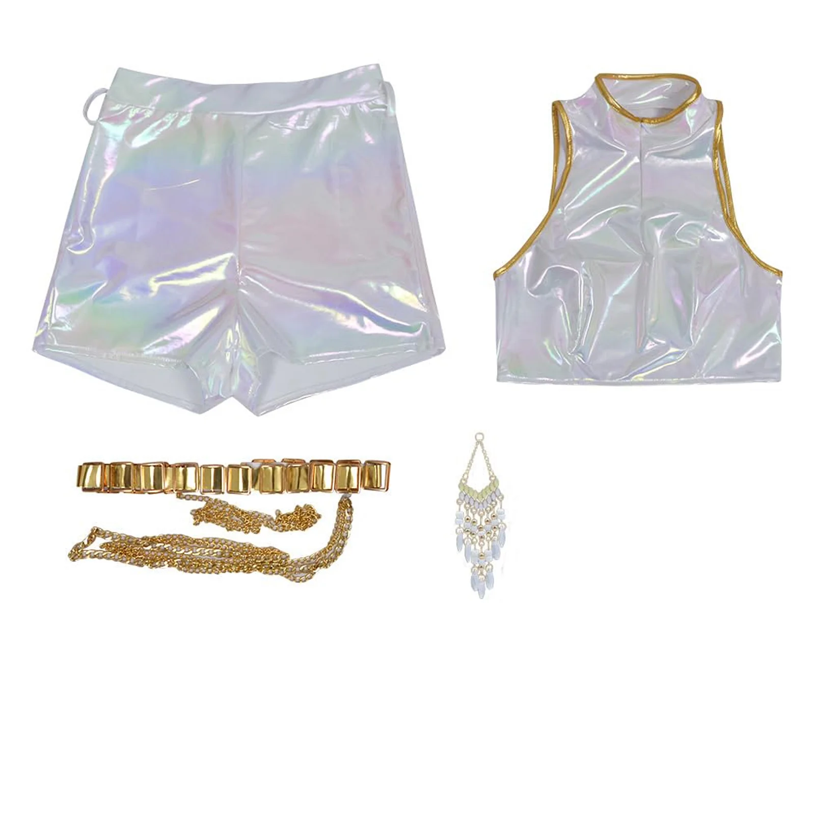 A szett egy hologramos topból és shortból áll, amely tökéletes választás fiatal K-POP rajongók és táncosok számára.