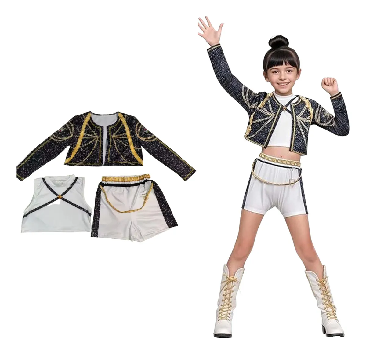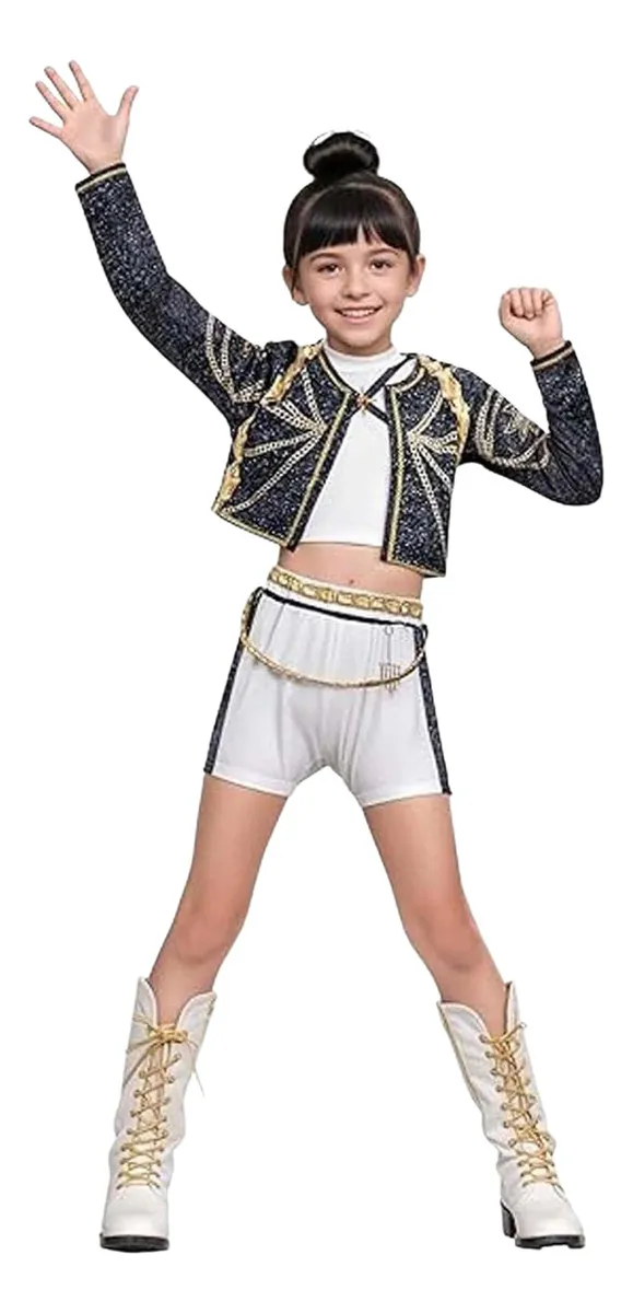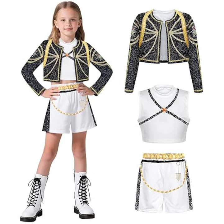 A Rummi K-POP jelmez gyerekeknek tökéletes választás minden fiatal táncos és K-POP rajongó számára. A látványos, színpadi megjelenésű fellépő ruha ideális táncbemutatókhoz, iskolai rendezvényekhez, versenyekhez, farsangra vagy tematikus bulikra.