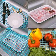 A BPA-mentes, nem toxikus szilikonból készült háló többcélú konyhai eszköz: kiolvasztás mellett használható a mosogató védelmére, valamint zöldségek és gyümölcsök mosására is, így valódi mindenes a konyhában.
