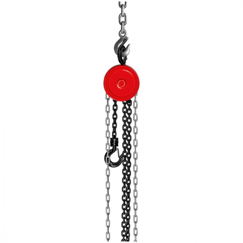 Az emelőberendezés egy stabil kampóval rögzíthető a plafonon vagy az állványon. A második kampó a súlyhoz szükséges. A kampó egy zárral biztosítható, így a tárgy biztonságosan függ a láncon. Mind az emelés, mind pedig a leeresztés alatt is blokkolható a lánc. Ennek köszönhetően mindig tökéletesen kontrollálhatja a láncemelővel való munkavégzést.