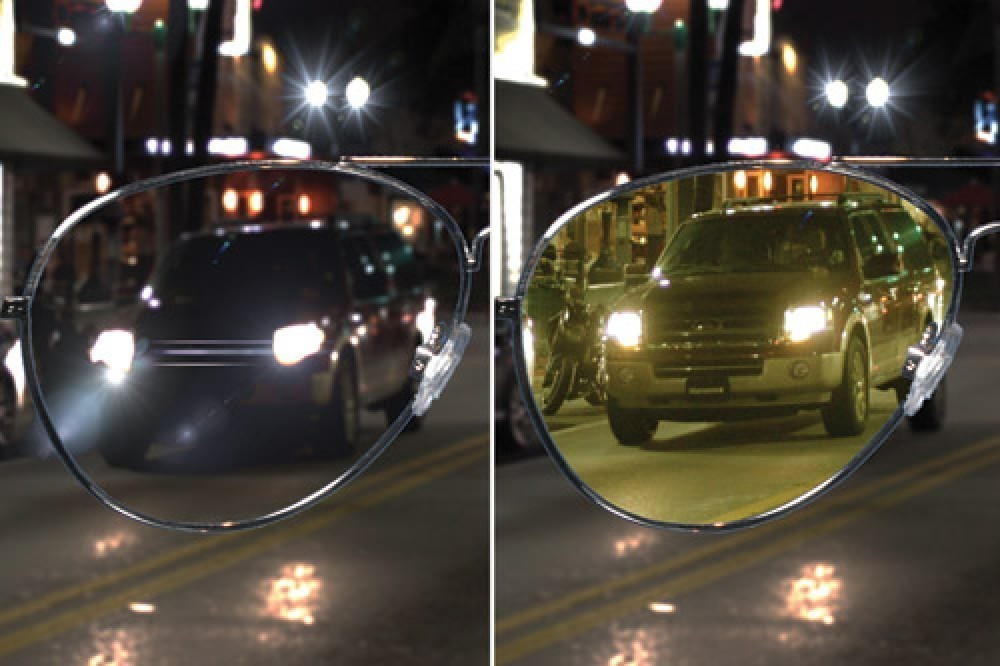 Működése: Ehhez hasonló védőszemüvegeket gyártottak a hagyományos, 50-60 Hz-es monitorok használatához is irodai dolgozóknak. Régebben a vibráló számítógép monitorok a több órai használat miatt rendkívüli módon fárasztották a szemet. A sárgított, UV szűrős lencse szűr, így azon keresztül nézve a pupilla jobban zár, vagyis a szembe jutó fény sem zavaró már annyira. Az éjszakai vezetés közben a sötétben a pupilla jobban nyit, ezért a szembe jutó reflektorok fénye vakíthat, ráadásul a hideg xenon fények, vagy az út menti reklámok csillogása, csillámlása is zavaró lehet egy idő után, nem beszélve a ködről, esőről, hóról. A védőszemüveget használva az éjszakai vezetésnél a szembe jövő autók fénye már nem lesz olyan vakító és így nem lesz fárasztó a sötétben való vezetés sem. Jól használható szélsőseges időjárási körülmény között is.