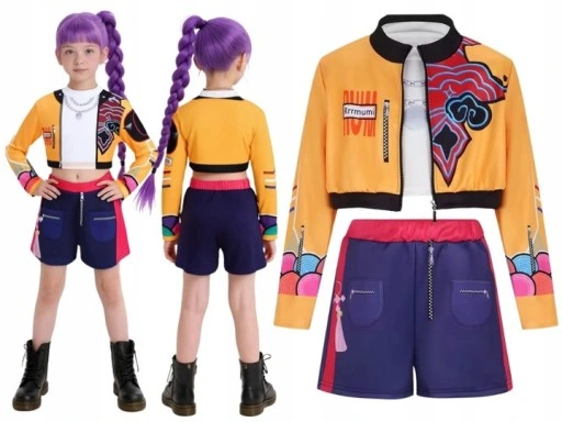 Ez a Rumi ihlette K-Pop demonvadász cosplay jelmez tökéletes választás azoknak a gyerekeknek, akik szeretik az egyedi, modern K-Pop stílust és a karakteres színpadi megjelenést.