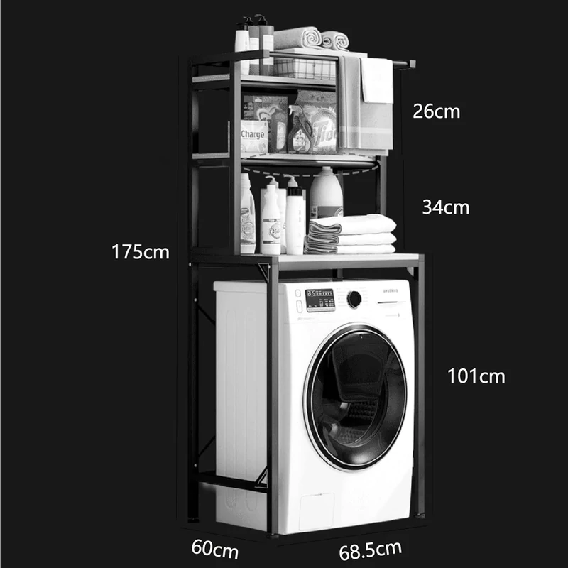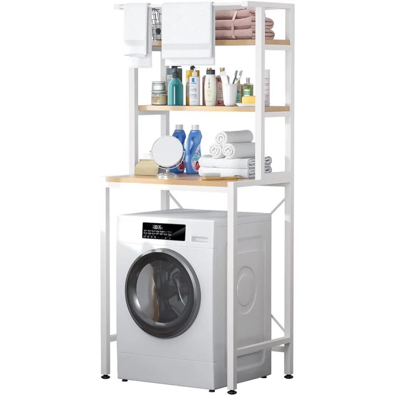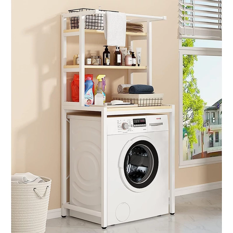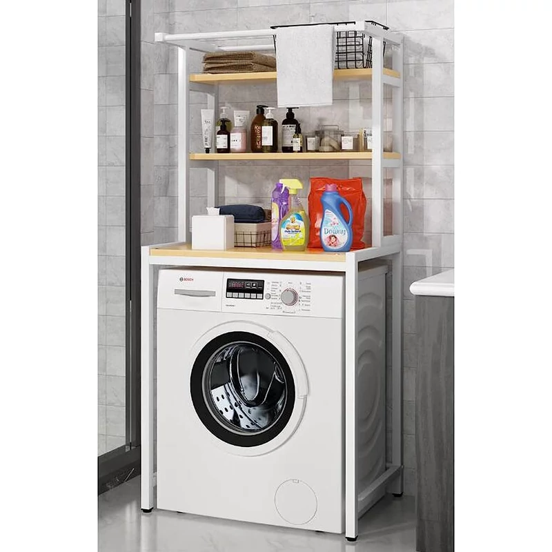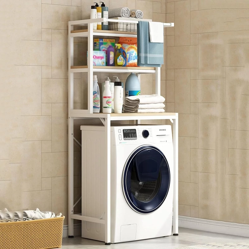 mosógép fölé polc, fürdőszobai polcrendszer, fúrás nélküli fürdőszobai polc, mosógép fölé tároló, fém fürdőszobai polc, 3 szintes polc mosógép fölé, helytakarékos fürdőszobai tároló, törölközőtartós polc, mosószer tároló polc.