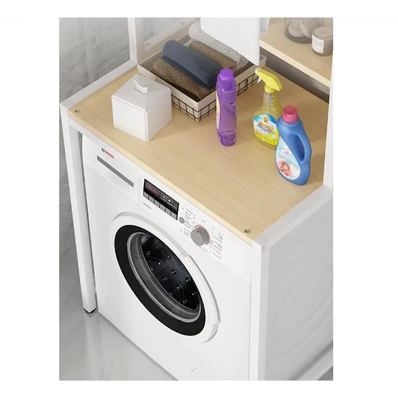 Használatával maximalizálhatjuk a tárolási kapacitásunkat, a mosógép által elfoglalt hely hasznossága megduplázódik azáltal, hogy a mosógép elhelyezésén túl egy teljes értékű tárolót is kapunk. A polc kialakításával átláthatóan és kényelmesen rendszerezhetőek háztartási eszközeink, fürdőszobai és takarítási kellékeink, így minden a felhasználás helyén felesleges hajlongás nélkül elérhető. Gyermekek vagy háziállatok számára elérhetetlen helyre kerülhetnek a mosószerek, öblítők vagy egyéb kényes vegyi termékek, ezáltal növelve a biztonságot a háztartásban. A polcrendszer tetején egy törölközőszárító rúd található, melyre például kéztörlő, törölköző vagy akár köntös is akasztható.