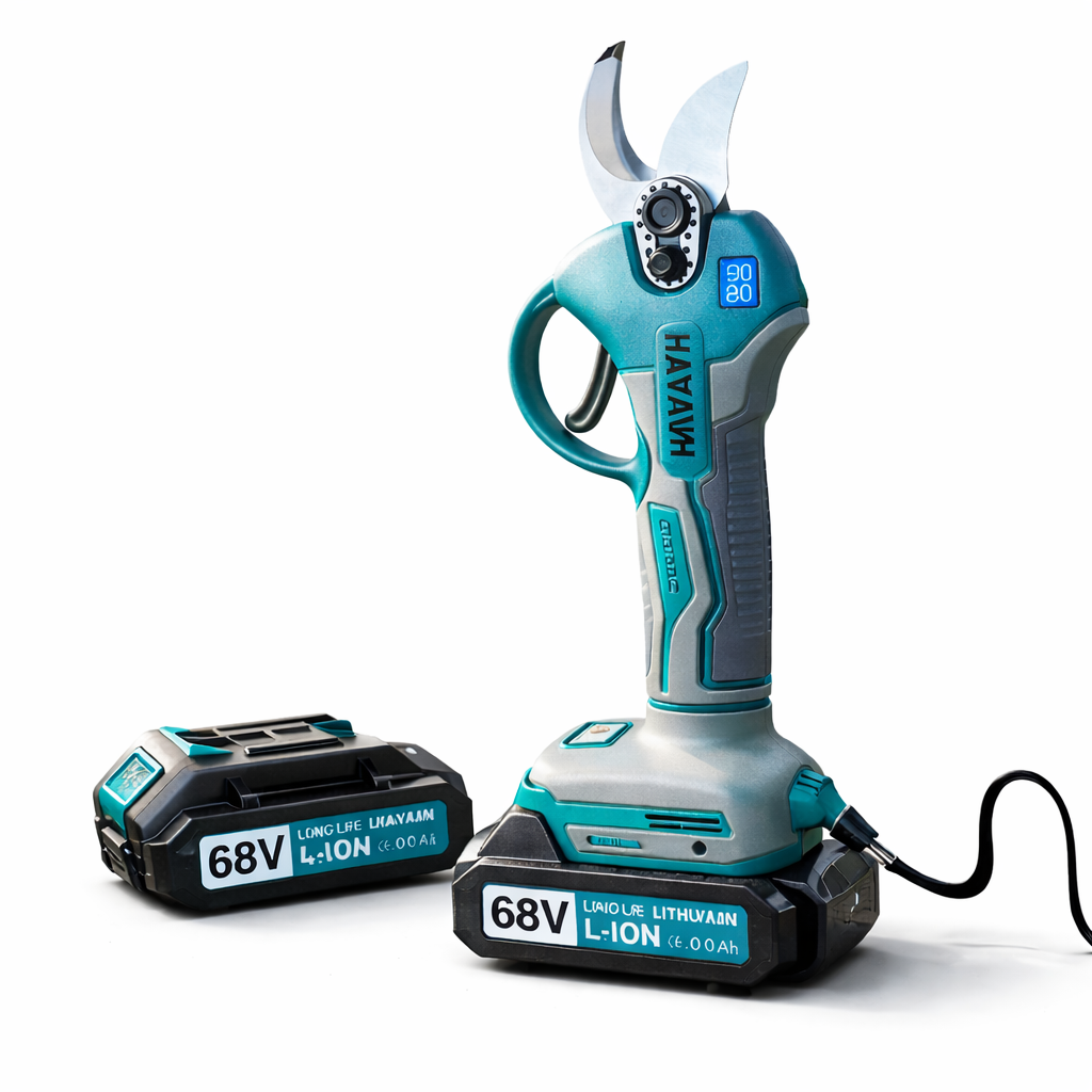 Az Elektromos metszőolló dupla akkumulátorral  68 V HAYAMI HA-1029 , nagyon könnyű, mindössze 1 kg! Ergonomikus és tökéletes a folyamatos munkához, rendkívül strapabíró vágókésekkel rendelkezik a különféle ágak, száraz vagy élő ágak metszéséhez. Alacsony karbantartási költsége van, mert motorja KEFEMENTES, szénkefék nélkül. A metszőolló 88 V akkumulátoros, akkumulátor állapotjelző LED-del.