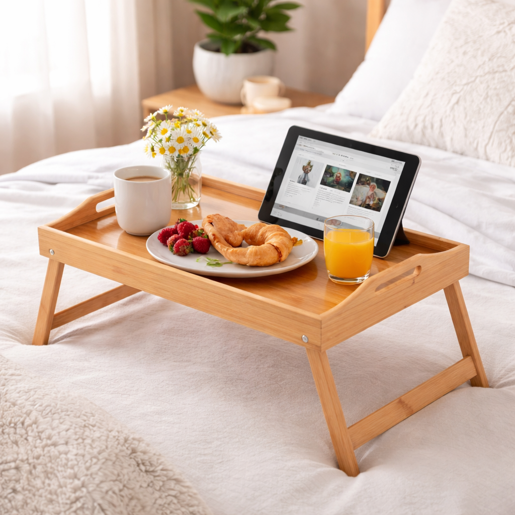 Praktikus és stílusos megoldás reggelihez az ágyban, kanapén való munkához vagy kényelmes filmezéshez. A természetes bambuszból készült ágytálca stabil, könnyű és időtálló, miközben letisztult megjelenésével bármely enteriőrbe illeszkedik.