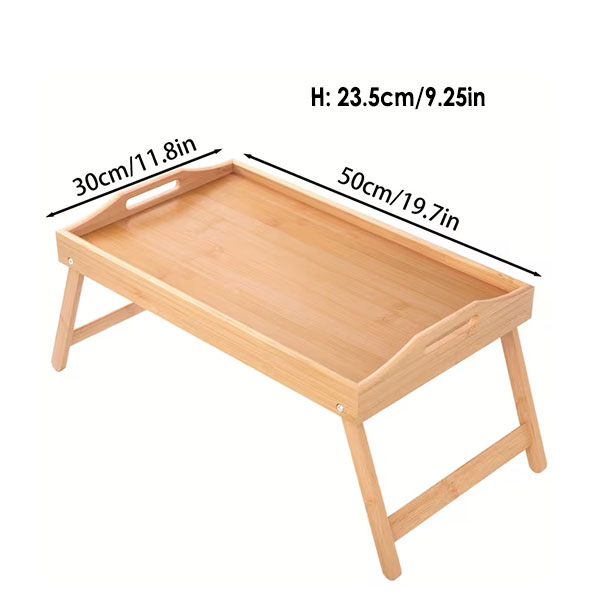 A masszív bambusz szerkezet biztos tartást nyújt laptop, könyv, tányér vagy bögre számára. Az összecsukható lábaknak köszönhetően használaton kívül kis helyen is elfér. Az oldalsó kivágott fogantyúk megkönnyítik a szállítást, az emelt szegély pedig extra biztonságot ad.