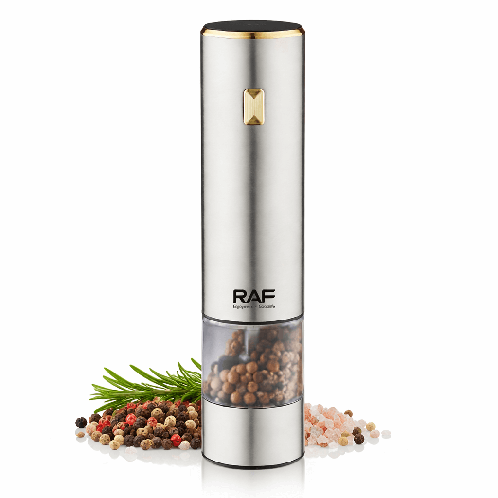 A RAF R.7141 elektromos borsőrlő ideális választás mindennapi főzéshez és elegáns tálaláshoz egyaránt.