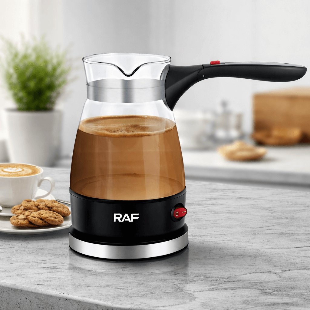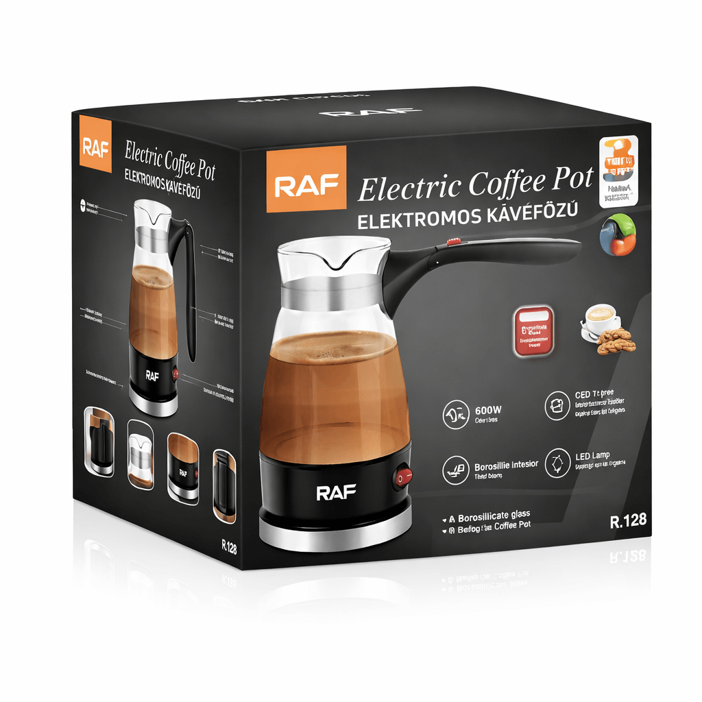 A RAF R.128 elektromos kávéfőző modern, letisztult megjelenésével és praktikus kialakításával ideális választás a mindennapi kávékészítéshez. A hőálló boroszilikát üveg edény nemcsak elegáns, hanem tartós és könnyen tisztítható is. A 600W teljesítmény gyors és egyenletes melegítést biztosít, így percek alatt élvezheted a friss, aromás kávét.
