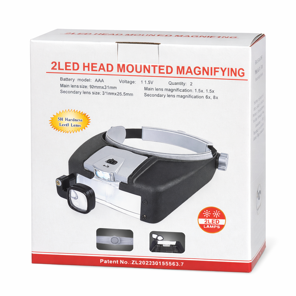 A praktikus fejpántos nagyító LED világítással megkönnyíti a részletgazdag munkavégzést, miközben szabadon hagyja a kezeket.