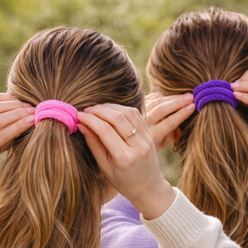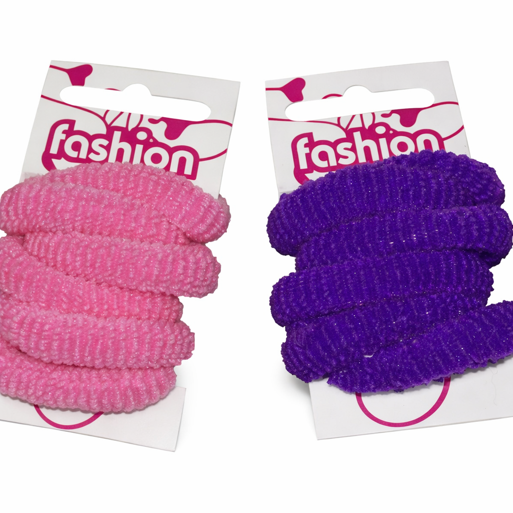 A puha, texturált felületű női hajgumi kellemes viselet sportoláshoz, munkához, iskolába vagy otthoni használatra is. Rózsaszín és lila színben választható, így könnyen igazítható az egyéni stílushoz.