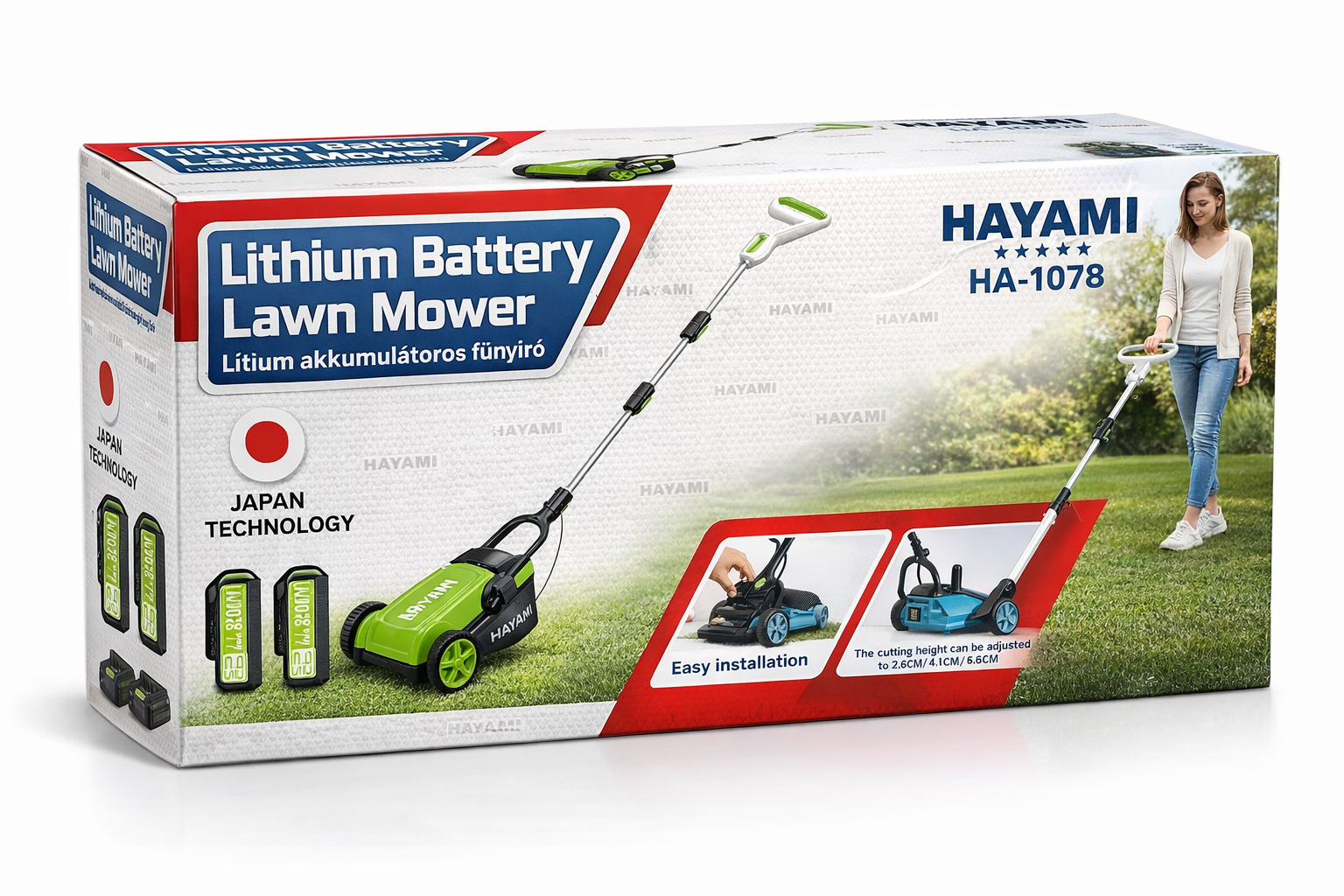 • 1 × HAYAMI HA-1078 akkumulátoros fűnyíró
