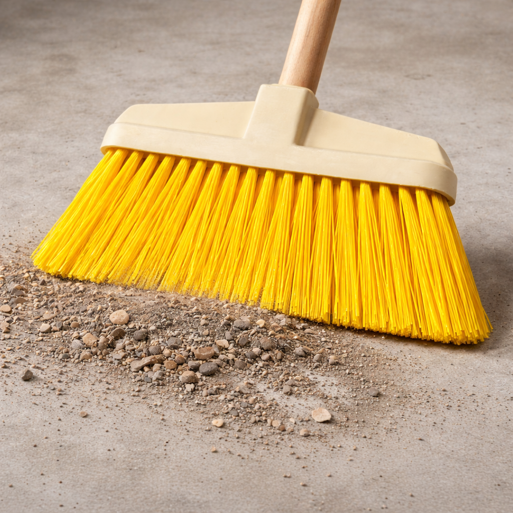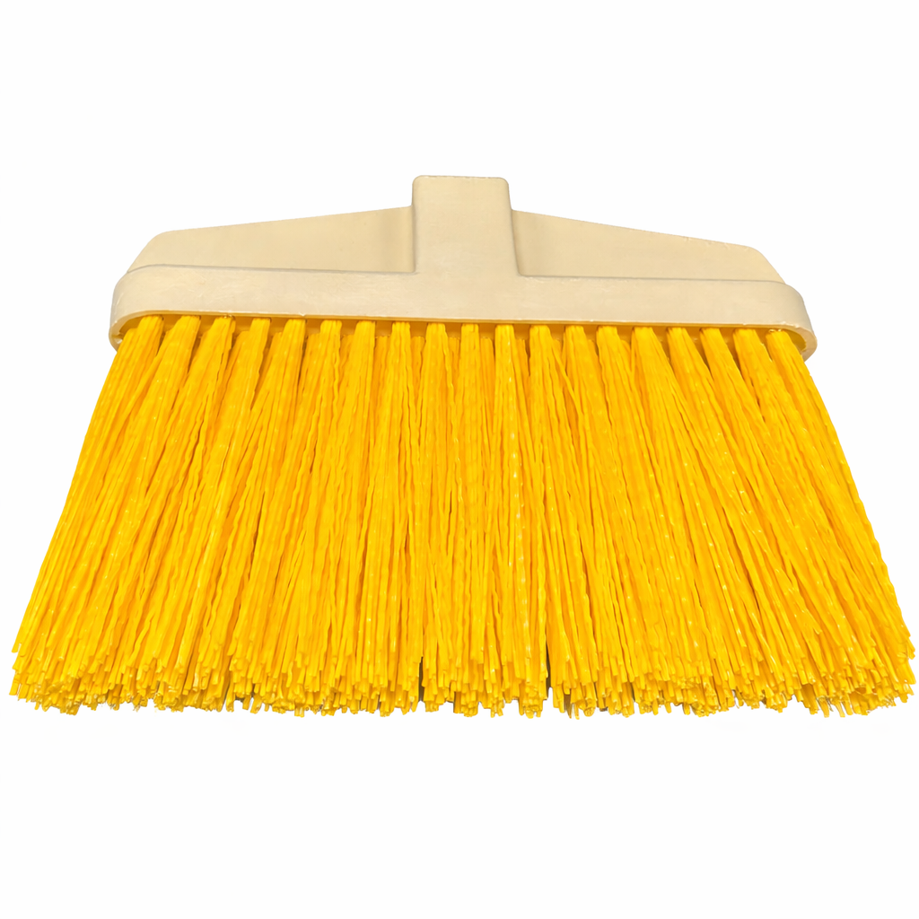 A tartós műanyag fej ellenáll a nedvességnek és a külső környezeti hatásoknak, így kültéri használatra is kiválóan alkalmas. A sűrű, élénk sárga sörték hatékony söprést biztosítanak egyenetlen felületeken is.
