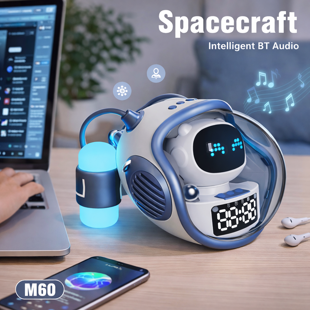 Az M60 Intelligens Space Astronauta hangszóró egy modern, multifunkcionális készülék, amely egyesíti a Bluetooth hangszóró, az ébresztőóra és a színváltós RGB lámpa előnyeit egyetlen stílusos eszközben. Futurisztikus űrhajós dizájnja nemcsak praktikus, hanem látványos kiegészítője is lehet nappalinak, hálószobának vagy gyerekszobának.