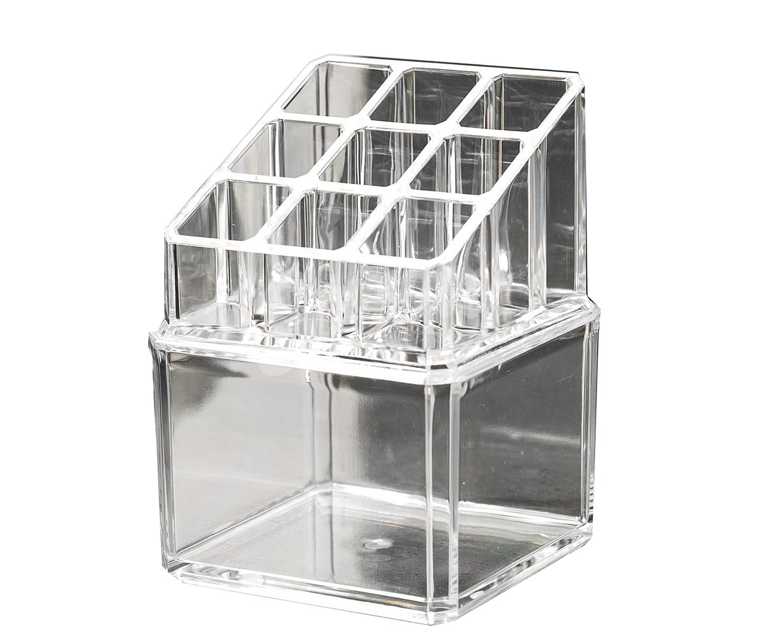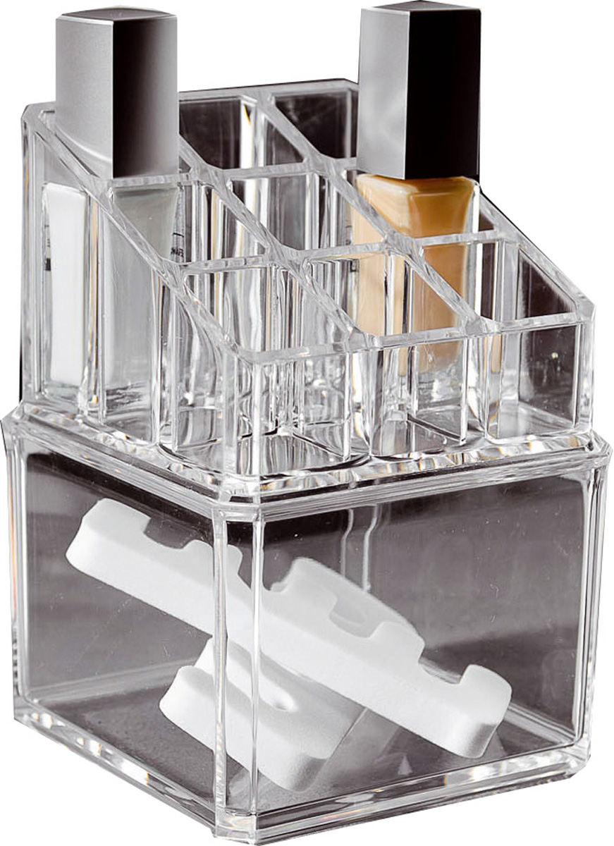 Esztétikusan formatervezett, stabil és masszív,vastag akril anyagból készült, multifunkcionális professzionális kozmetikai tároló.