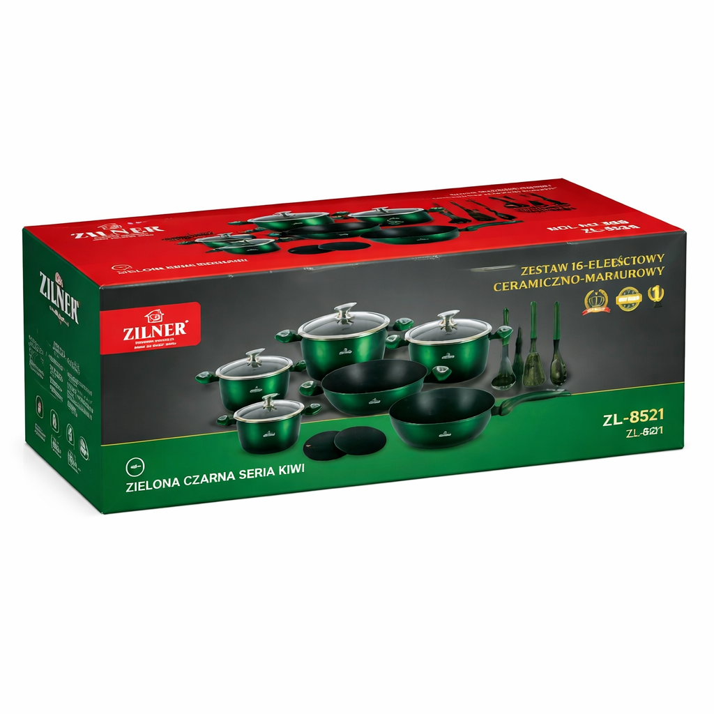Zilner Kerámia Bevonatos Edénykészlet Üveg Fedővel – 15 Részes Smaragd Zöld