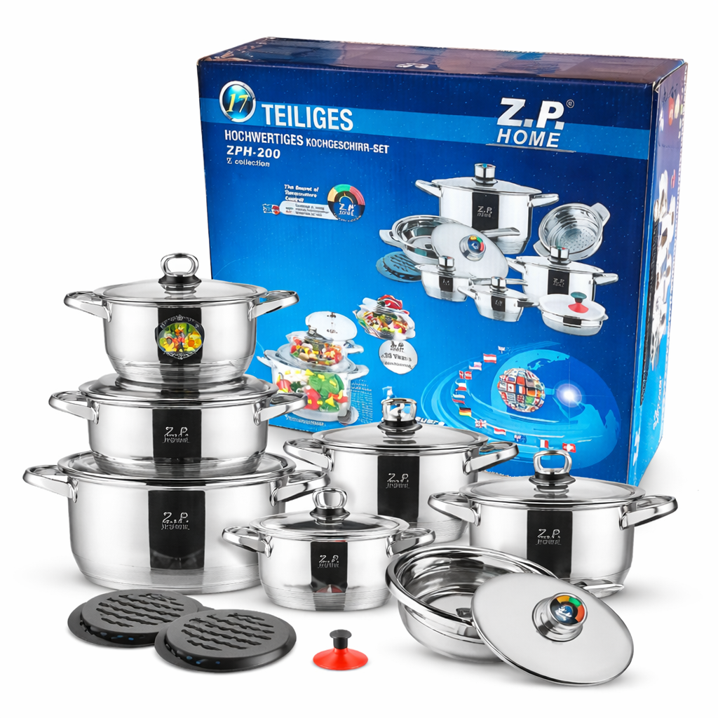 A Z.P. Home ZPH-200 prémium minőségű, 17 részes rozsdamentes acél edénykészlet ideális választás mindennapi főzéshez és nagyobb családi alkalmakhoz is. A modern kialakítás, a tartós anyaghasználat és a 12 rétegű hőelosztó alj biztosítja az egyenletes hőeloszlást és az energiatakarékos működést.
