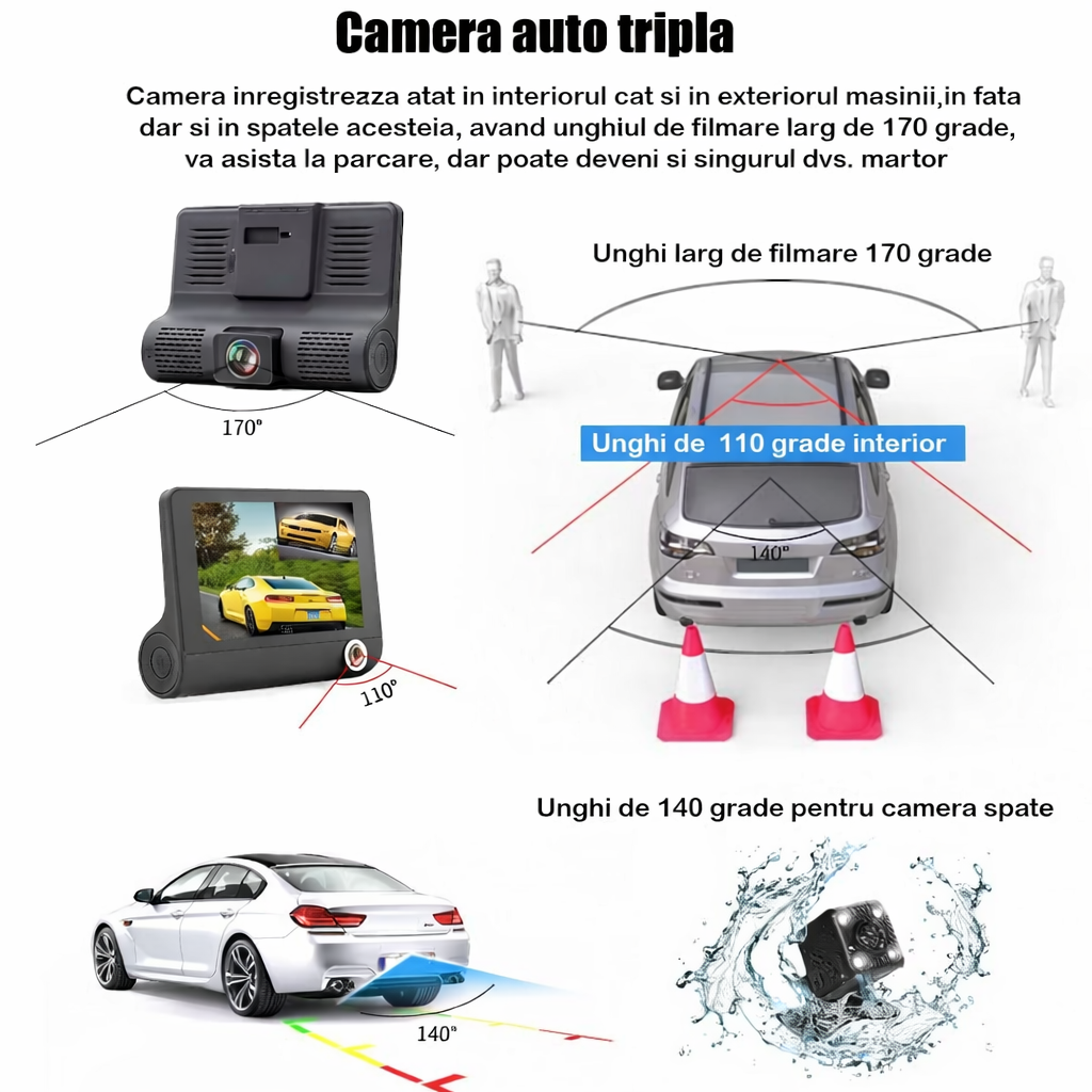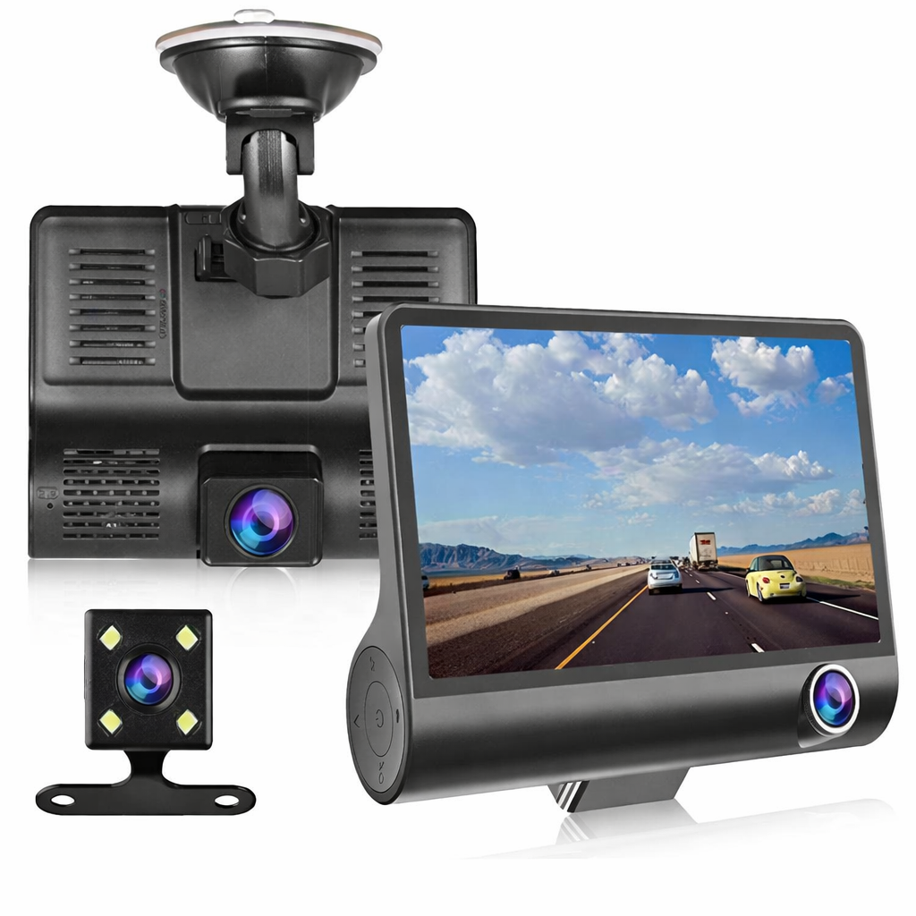 Rögzítsen minden fontos pillanatot vezetés közben ezzel a 3 kamerás autós eseményrögzítő rendszerrel, amely elöl, belül és hátul is figyeli a jármű környezetét. A Full HD 1080P felbontás, az éjszakai HDR mód és a parkoló funkció gondoskodik arról, hogy minden helyzetben tiszta és részletgazdag felvételek készüljenek.