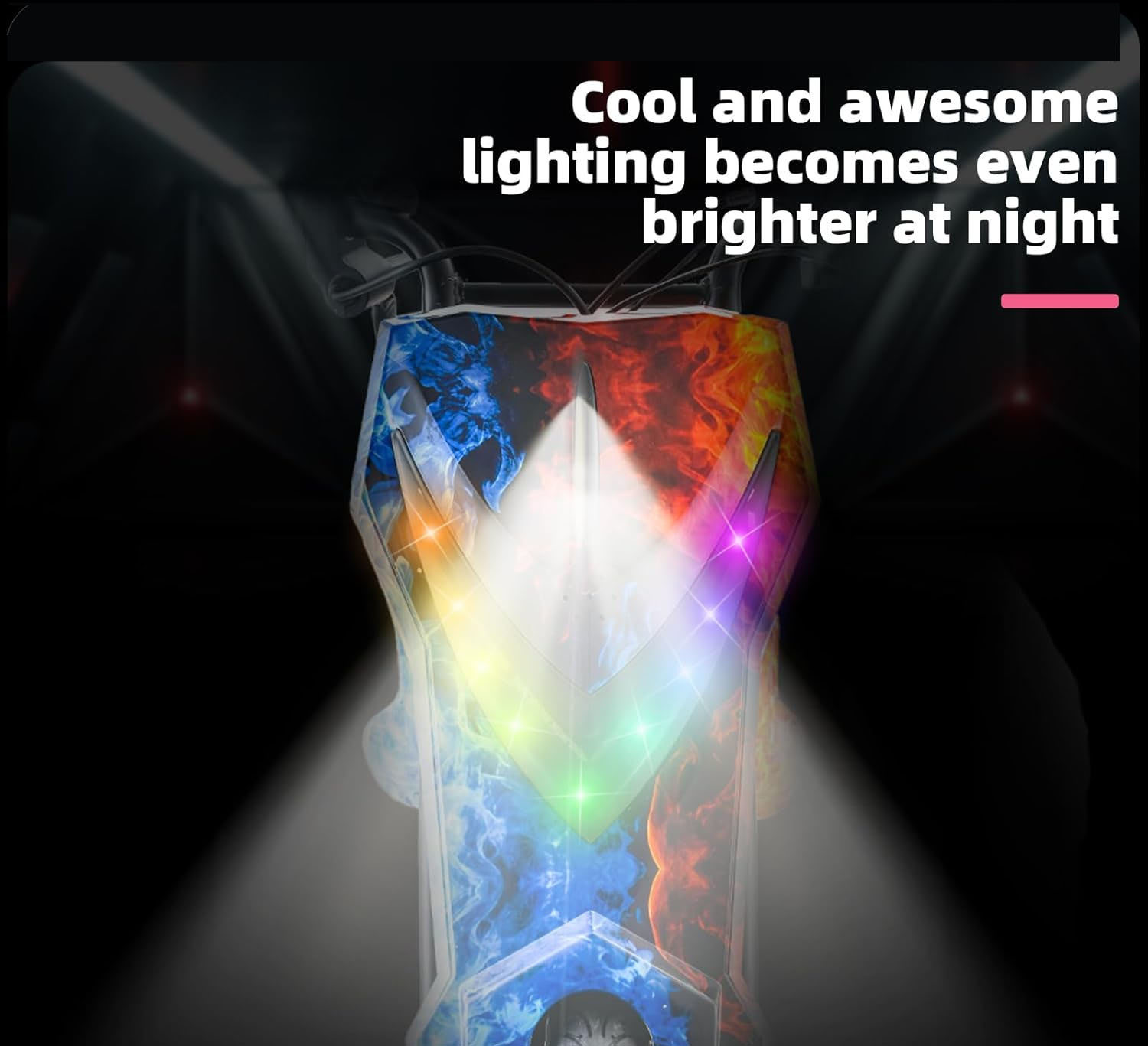 LED világítás: A roller LED világítással van felszerelve, amely nemcsak a biztonságodat szolgálja, hanem egyedi stílusával is kiemelkedik a tömegből. Az első lámpa színesen világít, míg a hátsó kerék vibráló fényekkel kápráztat.