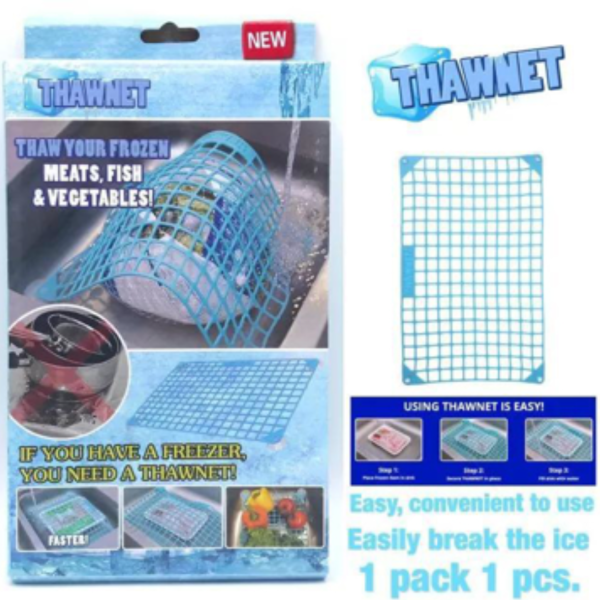 A ThawNet szilikon kiolvasztó háló forradalmasítja a fagyasztott élelmiszerek felolvasztásának módját. A speciális szilikon szerkezet egyenletesen osztja el a vizet az élelmiszer teljes felületén, így akár hideg vízben is gyorsabban és biztonságosabban olvadnak ki a fagyasztott húsok, halak és zöldségek.