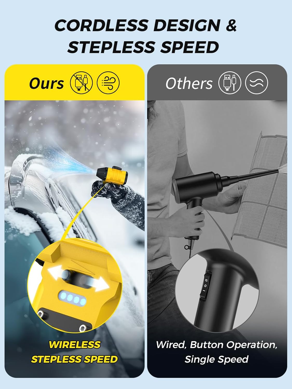 Az egyik legerősebb mini légfúvó a kategóriájában, amely könnyedén kifújja a port a legszűkebb résekből is.