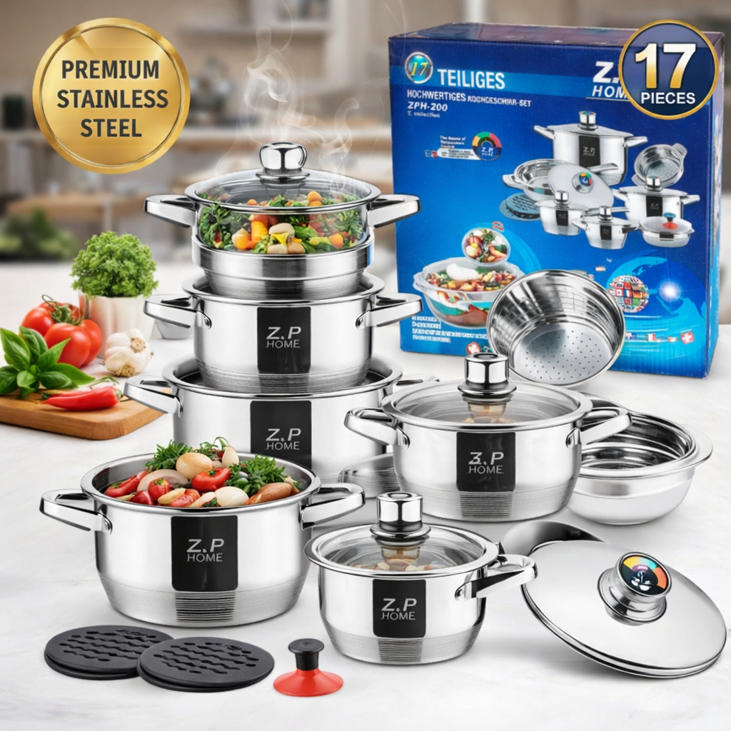 A Z.P. Home ZPH-200 prémium minőségű, 17 részes rozsdamentes acél edénykészlet ideális választás mindennapi főzéshez és nagyobb családi alkalmakhoz is. A modern kialakítás, a tartós anyaghasználat és a 12 rétegű hőelosztó alj biztosítja az egyenletes hőeloszlást és az energiatakarékos működést.