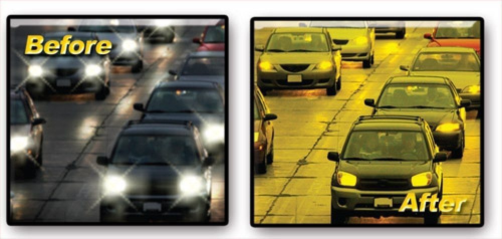 Működése: Ehhez hasonló védőszemüvegeket gyártottak a hagyományos, 50-60 Hz-es monitorok használatához is irodai dolgozóknak. Régebben a vibráló számítógép monitorok a több órai használat miatt rendkívüli módon fárasztották a szemet. A sárgított, UV szűrős lencse szűr, így azon keresztül nézve a pupilla jobban zár, vagyis a szembe jutó fény sem zavaró már annyira. Az éjszakai vezetés közben a sötétben a pupilla jobban nyit, ezért a szembe jutó reflektorok fénye vakíthat, ráadásul a hideg xenon fények, vagy az út menti reklámok csillogása, csillámlása is zavaró lehet egy idő után, nem beszélve a ködről, esőről, hóról. A védőszemüveget használva az éjszakai vezetésnél a szembe jövő autók fénye már nem lesz olyan vakító és így nem lesz fárasztó a sötétben való vezetés sem. Jól használható szélsőseges időjárási körülmény között is.