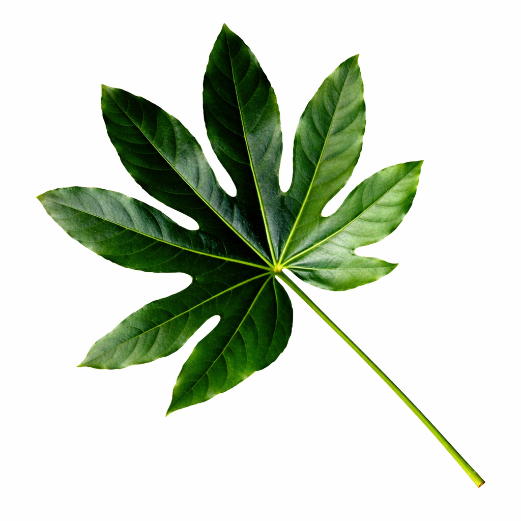 A levél finom textúrájú, selyem hatású anyagból készült, amely megjelenésében és tapintásában is a valódi növényi leveleket idézi. A természetes zöld árnyalat és a részletgazdag erezet esztétikus, igényes hatást kelt, így önmagában vagy más művirágokkal kombinálva is látványos kompozíciók készíthetők belőle.