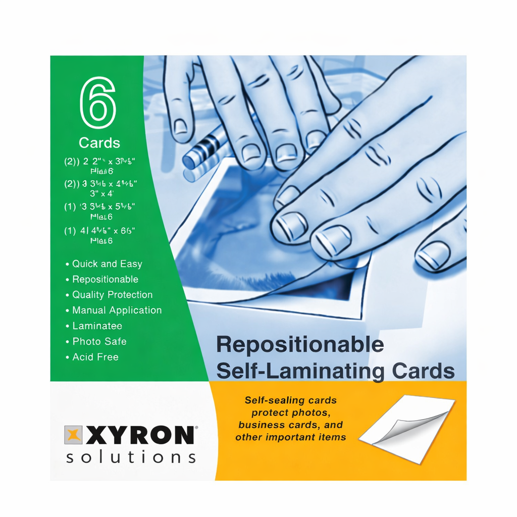 A Xyron áthelyezhető önlamináló kártyák gyors és praktikus megoldást kínálnak fontos kártyák, fényképek és dokumentumok védelmére. A laminálás gép nélkül, kézzel történik, így azonnal használható otthon, irodában vagy iskolában is. Az önzáró fólia megvédi a kártyákat a szennyeződésektől, nedvességtől és a mindennapi kopástól.
